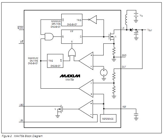 MAX756CPA absolute maximum ratings: (1)Supply Voltage (OUT to GND): -0.3V, +7V; (2)Switch Voltage (LX to GND): -0.3V, +7V; (3)Auxiliary Pin Voltages (SHDN, LBI, LBO, REF, 3/5, FB to GND): -0.3V, (VOUT + 0.3V); (4)Reference Current (IREF): 2.5mA; (5)Continuous Power Dissipation: 727mW; (6)Operating Temperature Ranges: 0 to +70℃; (7)Junction Temperature: +150℃; (8)Storage Temperature Range: -65 to +160℃; (9)Lead Temperature (soldering, 10sec): +300℃.